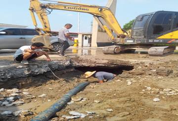 2015年8月1日早上八點(diǎn),宜城天河供水公司接到電話,隨南路天鑫油脂門口有大量水涌出,路面積滿自來水。接到電話的搶修人員迅速趕往現(xiàn)場(chǎng)。因考慮到此路段供水面積大、用戶多,為縮短停水時(shí)間,盡早恢復(fù)供水,搶修人員邊組織人員在漏水點(diǎn)進(jìn)行開挖,邊根據(jù)經(jīng)驗(yàn)做好備件材料的準(zhǔn)備工作,克服了高溫酷暑,水泥路面硬不好開挖的困難,從烈日炎炎的白天,連續(xù)作戰(zhàn)到夜深人靜,加班加點(diǎn)的完成了搶修任務(wù),于8月2日凌晨3點(diǎn)完成了漏點(diǎn)搶修工作,8點(diǎn)恢復(fù)了供水。