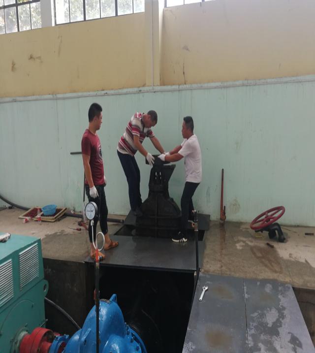 即便時(shí)至夜晚,泵房的溫度也讓人感到悶熱難耐,大汗淋漓,但維修師傅們?nèi)徊活欉@些,聚精會(huì)神地專(zhuān)注于手上的工作,齊心協(xié)力,連續(xù)奮戰(zhàn),終于在第二天凌晨三點(diǎn)左右維修完畢。待一切設(shè)備正常運(yùn)行后,已是凌晨5點(diǎn)了,天已蒙蒙亮,但大家并不感到疲憊,而是有一種搶修勝利后的喜悅從心底油然而生,因?yàn)榇蠹业呐Ω冻?,確保了襄城居民的正常用水,辛苦也值了!