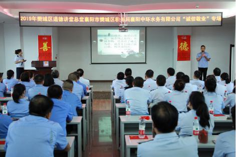 7月25日下午,根據(jù)襄陽市委宣傳部、市文明辦的要求,襄陽中環(huán)水務(wù)有限公司與樊城稅務(wù)局聯(lián)合舉辦了一期主題為“誠信敬業(yè)”的道德講堂活動(dòng)。襄陽中環(huán)公司紀(jì)委書記、副總經(jīng)理焦為民;財(cái)務(wù)總監(jiān)王平;工會(huì)主席徐玲,以及公司各基層單位、機(jī)關(guān)部室代表參加了活動(dòng)。